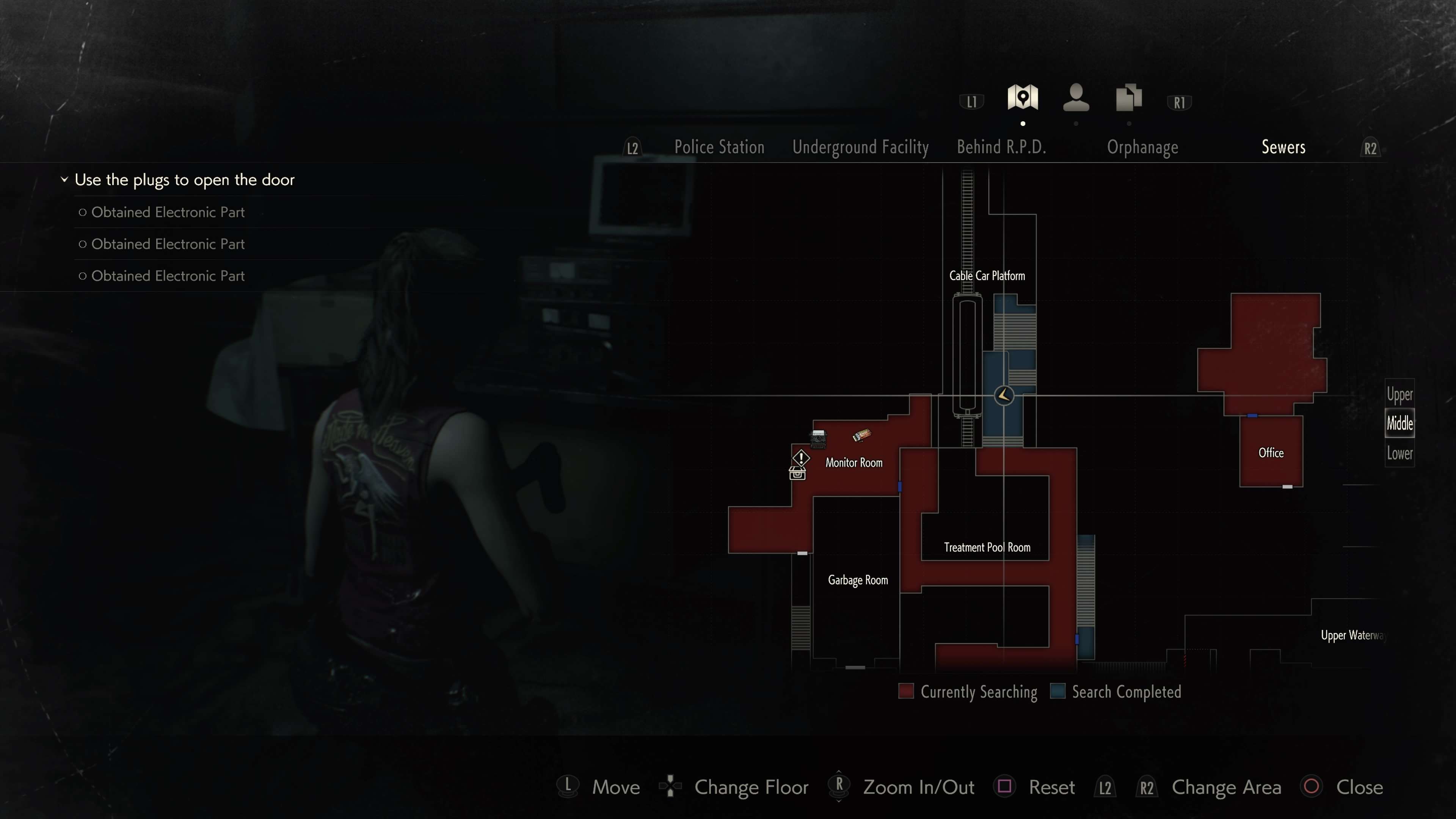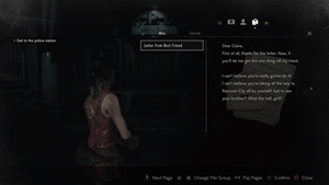 بعد از اتمام استوری لیون برای اولین بار زمان این است که استوری کلیر را برای اولین بار انجام دهیم. طبق راهنمای زیر با توجه به موقعیت فایل ها روی نقشه و تصویرشان، فایل ها را پیدا و دریافت کنید. نکته ی قابل توجه این است که داستان کلیر با داستان لیون کمی متفاوت است و در طی بازی مسیری وجود دارد که توسط لیون قابل دسترسی نبوده است. با کمی دقت و حوصله میتوانید دوازده فایلی که در استوری کلیر برای اولین بار قابل دسترسی هستند را پیدا کنید.